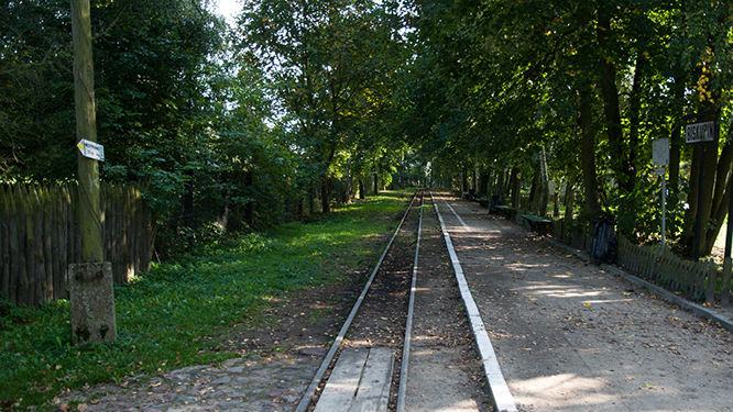 Do Biskupina można kiedyś było dojechać kolejką wąskotorową. Dawniej w tym miejscu od linii Żnin Wąskotorowy – Ośno Wąskotorowe odgałęziała się linia Biskupin. Jednak ze względu na likwidację odcinka do Ośna kolejka już nie funkcjonuje.