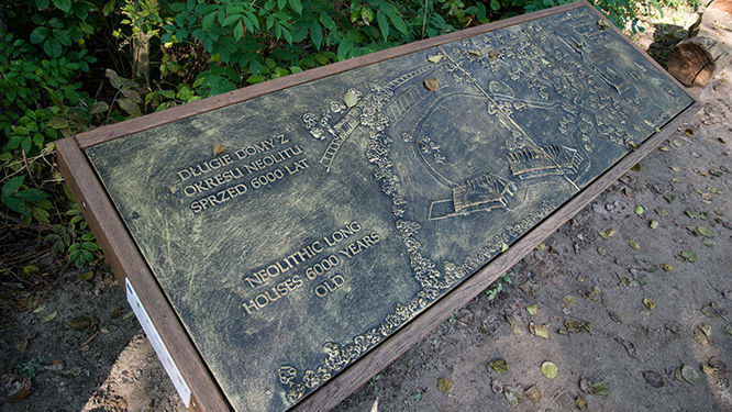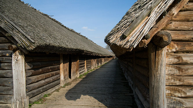 Kierujemy się w stronę tak zwanych „długich domów”. To najstarsze znalezisko na terenach Polski. Na skutek prowadzonych prac melioracyjno-irygacyjnych poziom wody w jeziorze Biskupińskim w 1933 r. obniżył się na tyle, że z wody zaczęły wystawać fragmenty umocnień starożytnej osady. Chłopi zaczęli odnajdywać różne zabytkowe przedmioty, nie zdając sobie jednak sprawy z ich archeologicznej wartości. Dopiero dzieci uczęszczające do miejscowej wiejskiej szkoły poinformowały o dziwnych znaleziskach swojego nauczyciela Walentego Szwajcera, a ten nagłośnił sprawę.