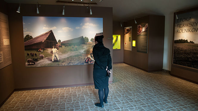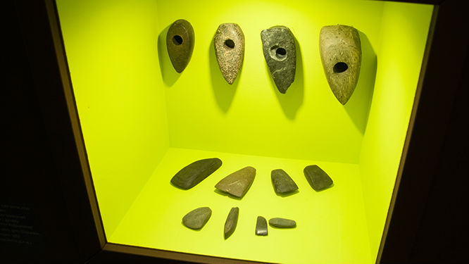 Można oglądać autentyczne eksponaty z wykopalisk. Kamienne topory i fragmenty ostrzy. Ocenia się, że wyszlifowanie jednego ostrza zajmowało kilka tygodni. Na zewnątrz przygotowano małe stanowisko, na którym można zobaczyć jak wiercono dziurę w kamieniu.