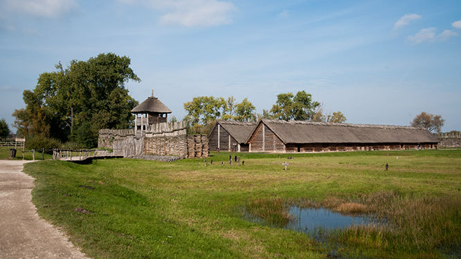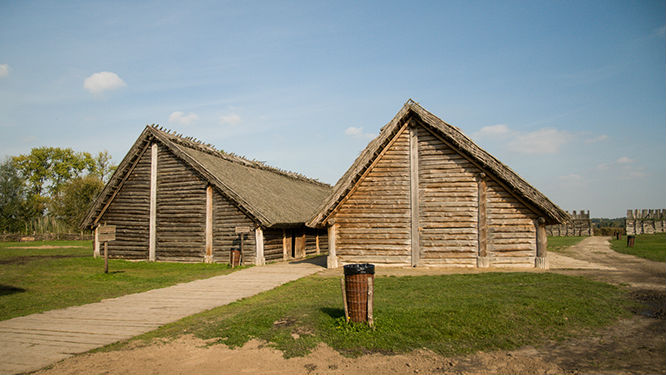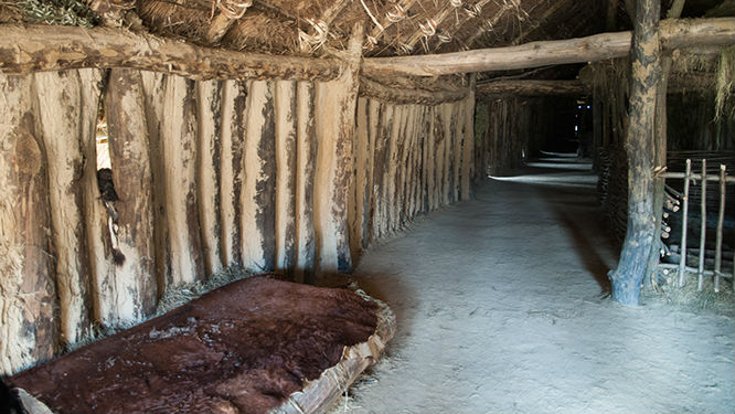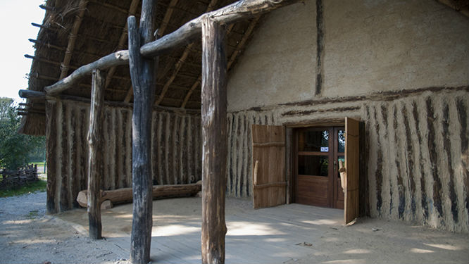 Wejście do pierwszego z dwóch zrekonstruowanych „długich domów”.
