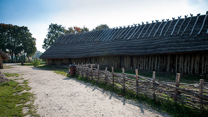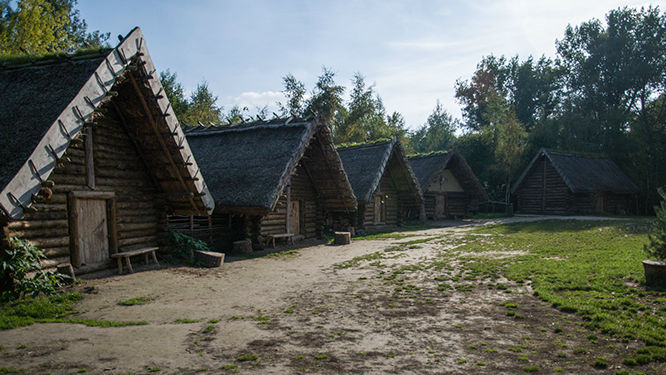 Na terenie Muzeum w Biskupinie znajduje się także rekonstrukcja wioski piastowskiej z okresu IX – XI w n.e.