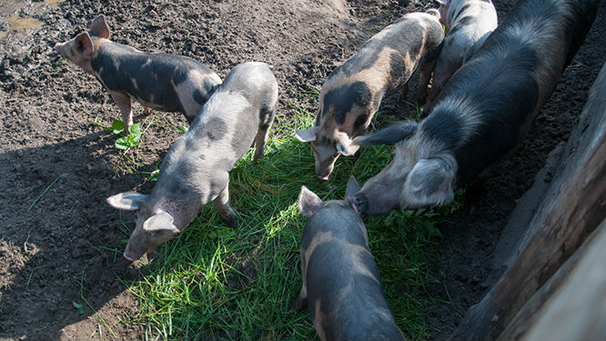 Na terenie wioski znajduje się także hodowla świń.
